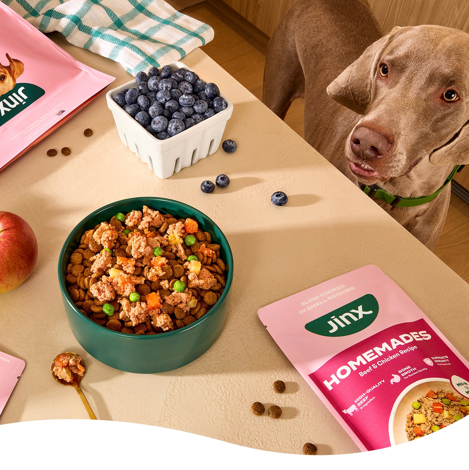 Jinx was founded on one simple philosophy: all dogs deserve to eat well. We tapped the experts to revolutionize kibble and craft premium, all natural food, toppers, and treats for your pup with the highest quality proteins, superfoods, and zero fillers.